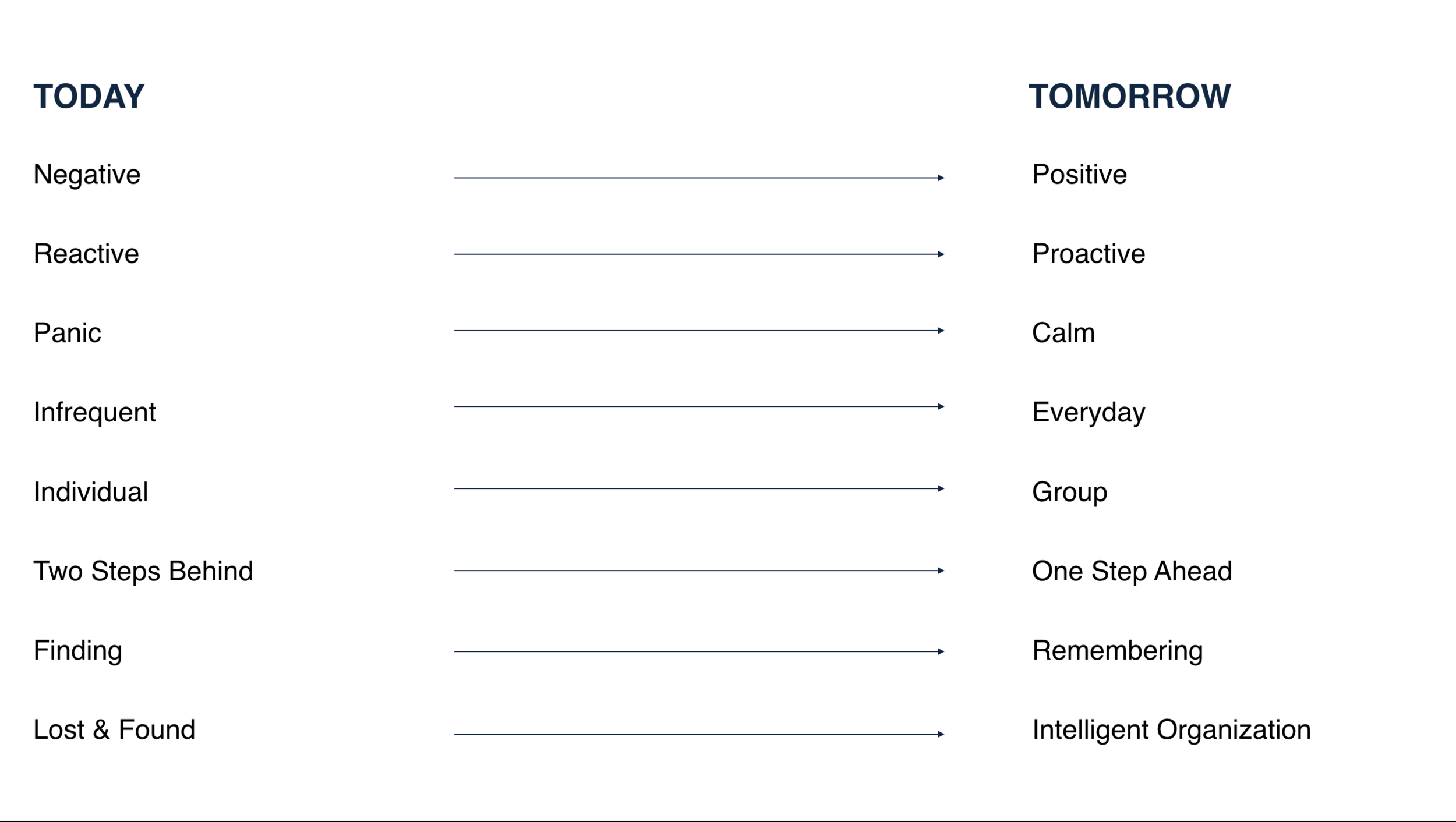 No brand has successfully solved the consumer’s problem of forgetfulness, and as a result, dissatisfaction and frustration persist. While our competition focuses on lost and found, we have the opportunity to shift the conversation to one of remembering.